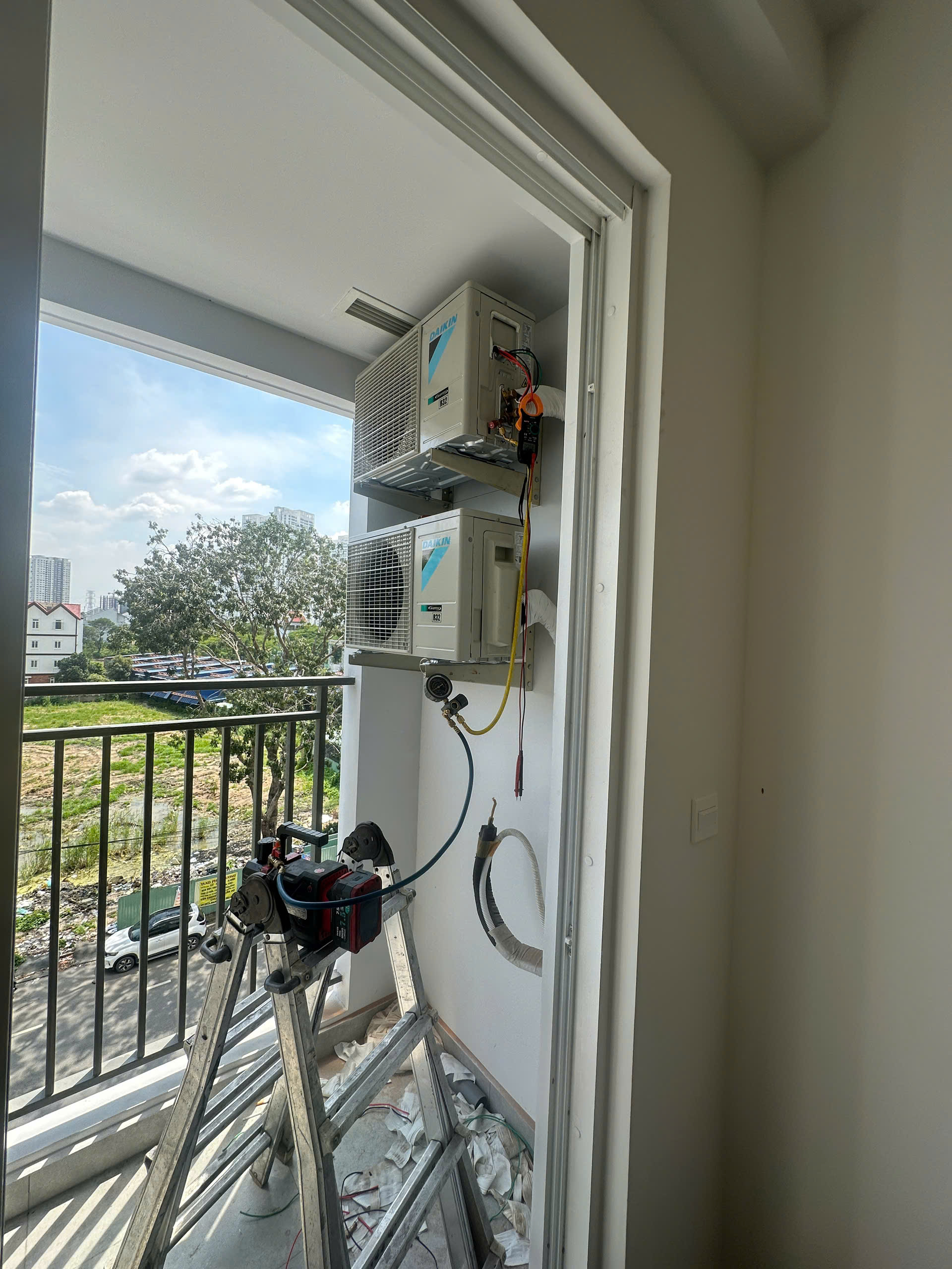 lắp máy lạnh Daikin Inverter, lắp đặt máy lạnh Daikin cho căn hộ Chung cư Sunrise Riverside, tháp H – Nhà Bè, lắp máy lạnh Daikin Sunrise Riverside, đo dòng điện máy lạnh bằng ampe kìm, lắp dàn nóng máy lạnh ngoài ban công, lắp đặt máy lạnh âm tường, kỹ thuật lắp đặt chuẩn quy trình Daikin, lắp điều hòa tại Nhà Bè, lắp máy lạnh căn hộ cao cấp Quận 7, thi công máy lạnh cho căn hộ mới bàn giao, lắp máy lạnh cho dự án Novaland, hình ảnh thực tế lắp đặt máy lạnh Daikin tại Sunrise Riverside