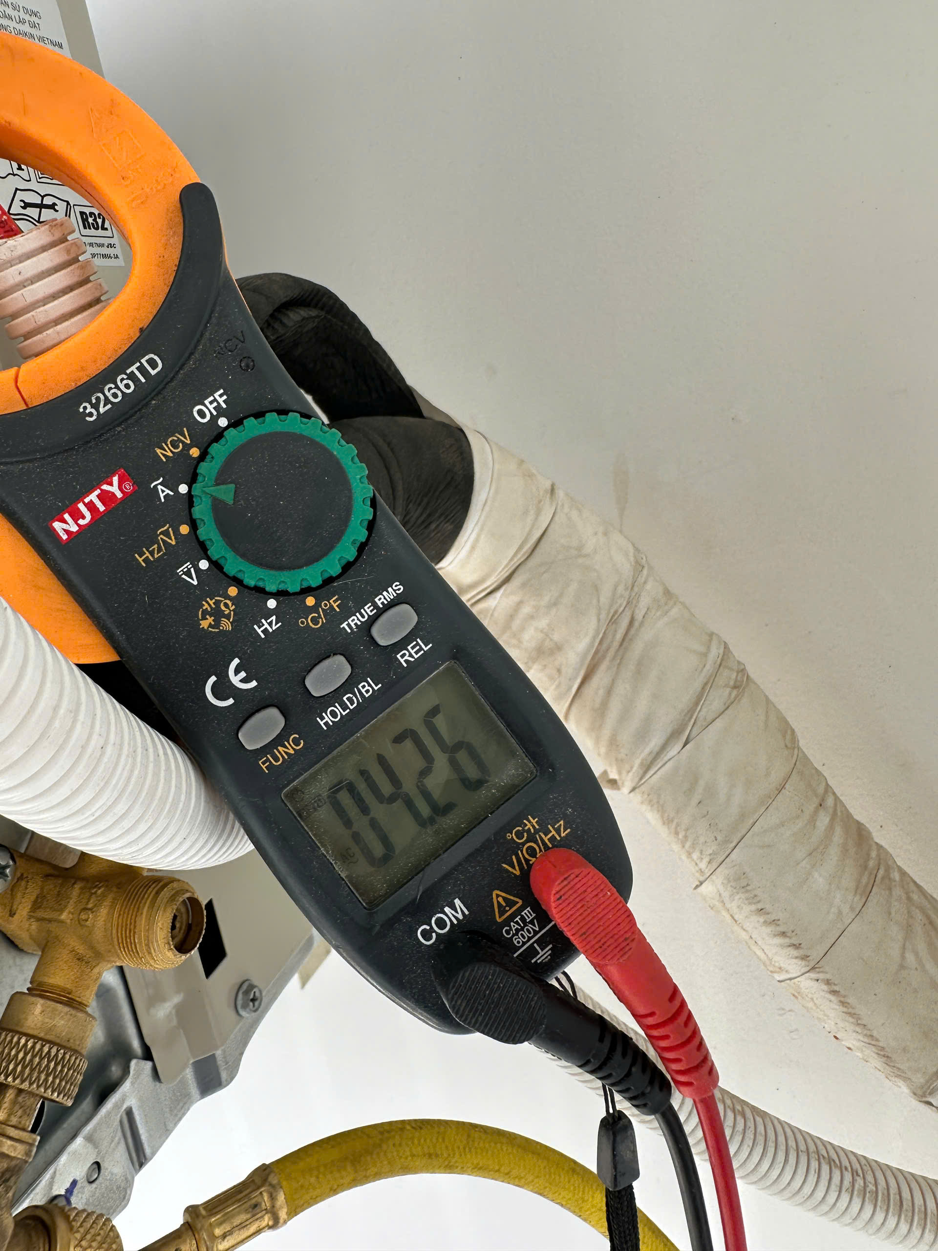 Đo kiểm dòng điện để đảm bảo máy hoạt động ổn địnhSau khi hoàn tất hút chân không và nạp gas, kỹ thuật tiến hành đo dòng điện hoạt động của dàn nóng. Bước này giúp xác định máy vận hành đúng công suất, đảm bảo an toàn điện và tuổi thọ thiết bị.