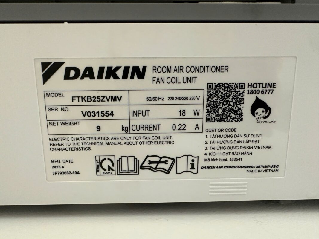 - Số lượng lắp đặt: 3 bộ Daikin FTKB25ZVMV (1.0HP)