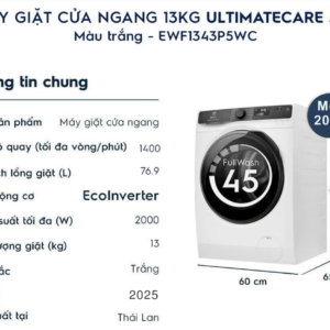 Bảng thông số kỹ thuật máy giặt Electrolux Inverter 13kg EWF1343P5WC