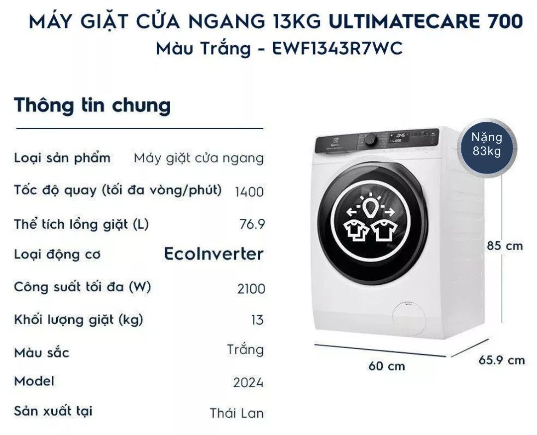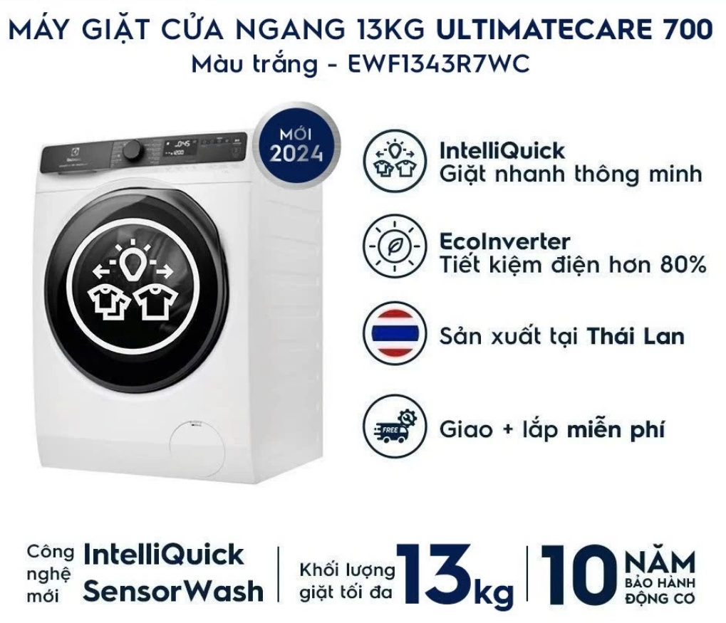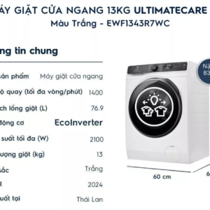 Máy giặt cửa trước Electrolux Inverter 13kg EWF1343R7WC