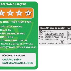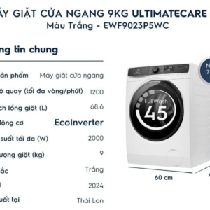 Bảng thông số kỹ thuật máy giặt cửa ngang Electrolux Inverter 9kg EWF9023P5WC