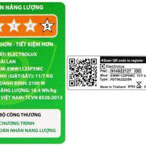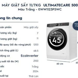 Bảng thông số kỹ thuật máy giặt sấy Electrolux Inverter EWW1123P5WC