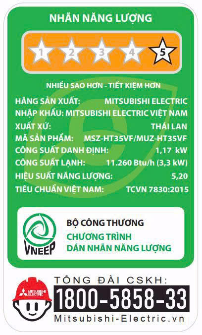 Bảng thông số kỹ thuật Máy lạnh Mitsubishi Electric hai chiều Inverter 1.5HP MSY-HT35VF