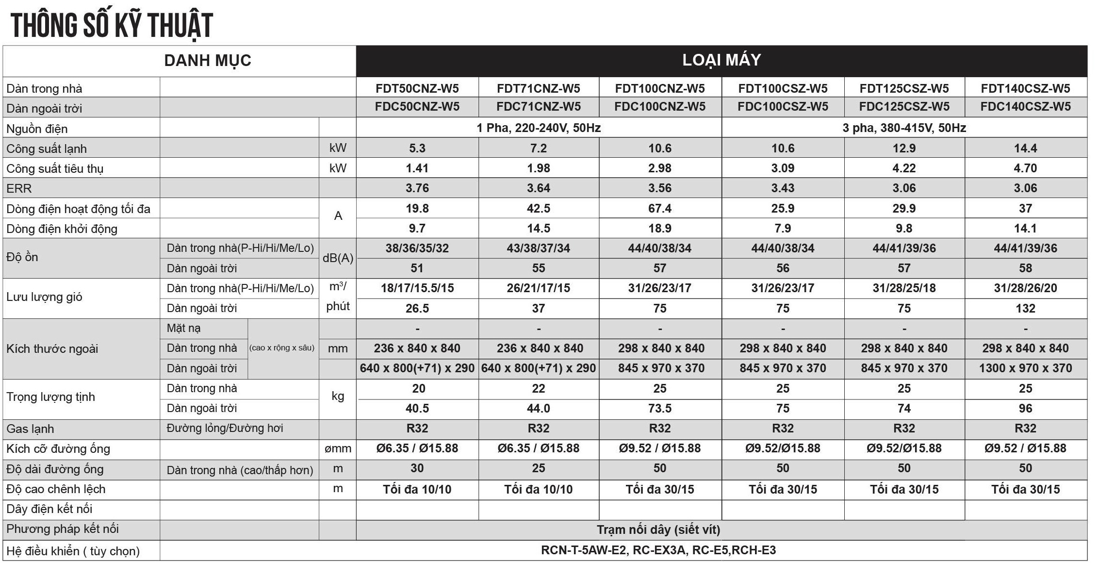 Thông số kỹ thuật dòng FDT non-inverter 2025 của Mitsubishi Heavy Industries
