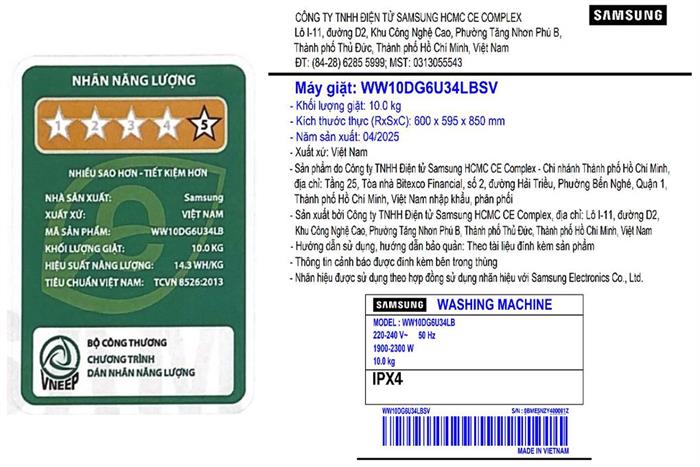 Máy giặt Samsung WW10DG6U34LBSV là lựa chọn phù hợp cho gia đình đang tìm một thiết bị giặt hiện đại, tích hợp công nghệ tiên tiến và kết nối thông minh. Sản phẩm mang đến trải nghiệm giặt giũ hiệu quả, tiện lợi và tiết kiệm năng lượng trong sinh hoạt hàng ngày.