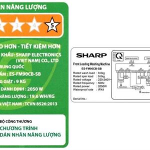 Bảng thông số kỹ thuật máy giặt Sharp cửa ngang 9 kg ES-FM90CB-SB
