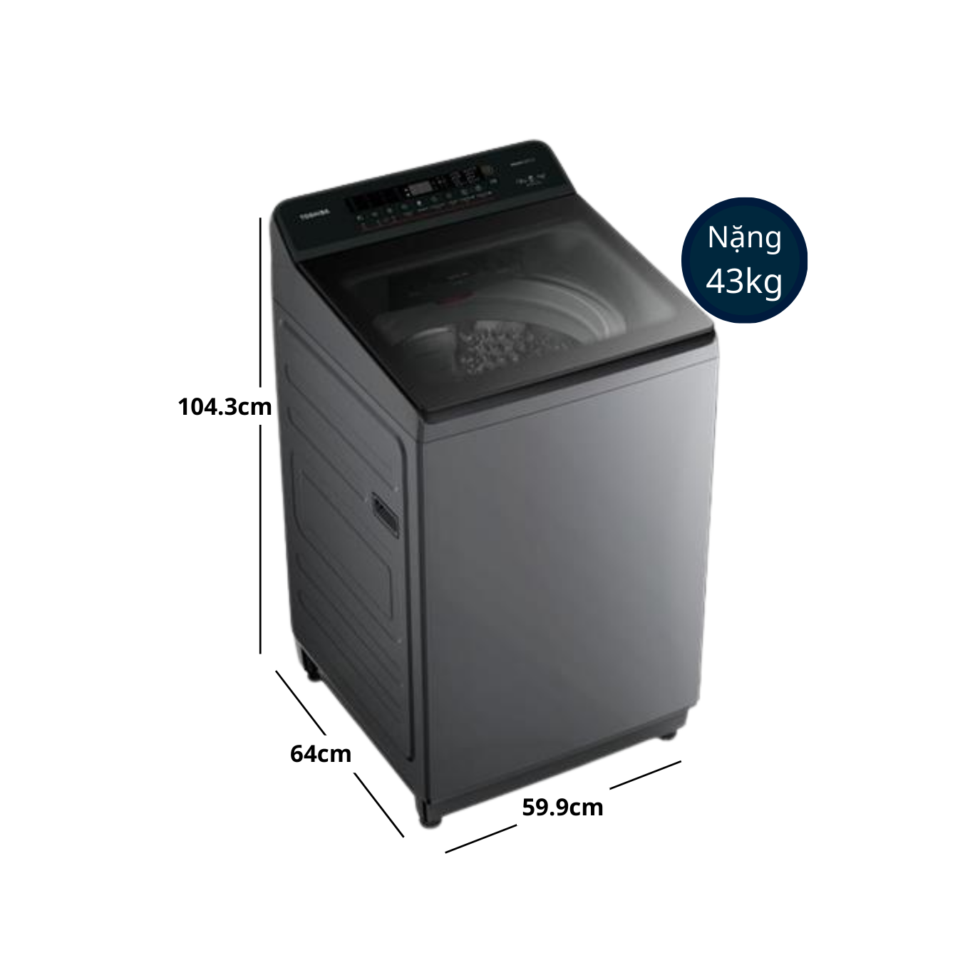 Bảng thông số kỹ thuật của máy giặt Toshiba Inverter 12kg AW-T26D1300TV(MG)