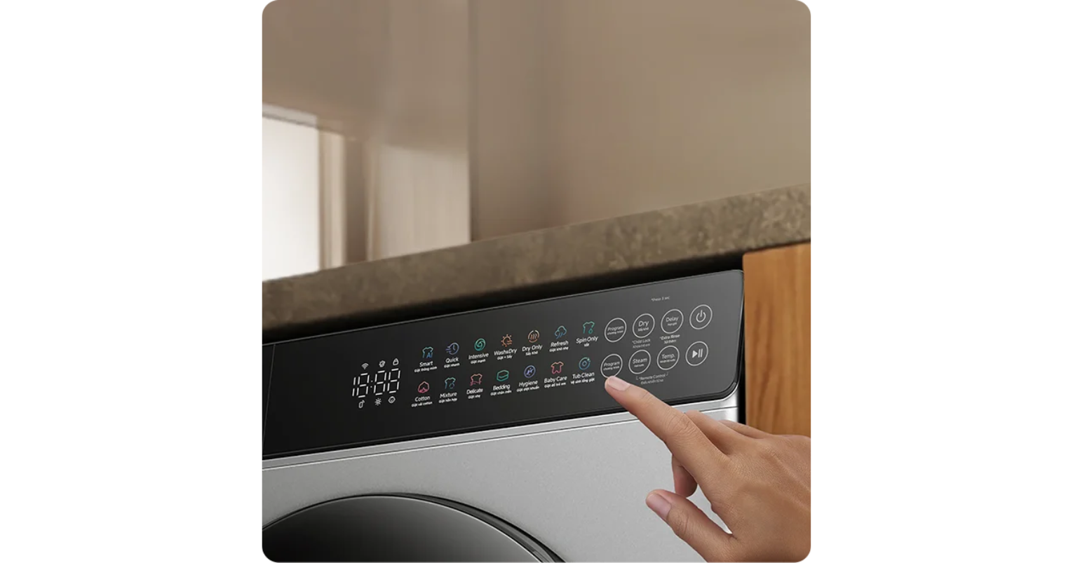 Máy được tích hợp hệ thống cảm biến tải trọng, tự động nhận diện khối lượng quần áo để tối ưu lượng nước và thời gian giặt. Công nghệ sấy thông minh kiểm soát nhiệt độ và thời gian sấy, giúp quần áo khô đều mà vẫn giữ được độ mềm mại của sợi vải. Cơ chế kiểm soát sấy tự động giúp kết thúc chu trình khi quần áo đạt độ khô phù hợp, hạn chế tình trạng sấy quá mức, bảo vệ chất lượng vải.