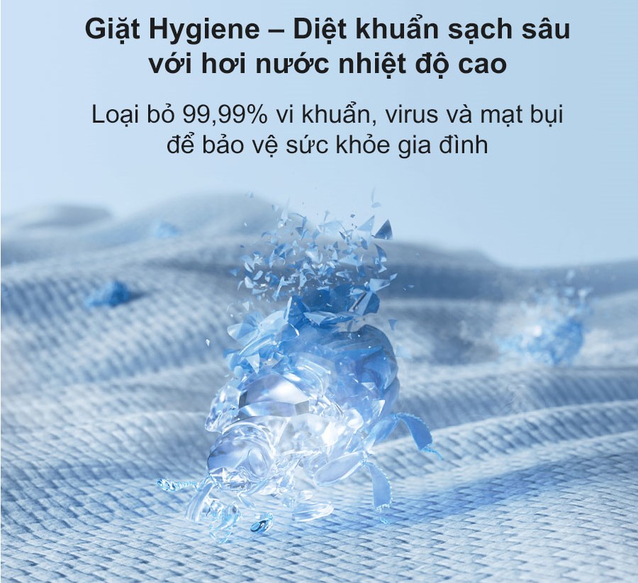 Máy giặt sấy Xiaomi Mijia tích hợp chế độ giặt hơi nước giúp loại bỏ vi khuẩn và mạt bụi trên quần áo. Hơi nước ở nhiệt độ cao thẩm thấu sâu vào sợi vải, hỗ trợ làm sạch mà không gây hư hại chất liệu. Chế độ Hygiene giúp tăng cường vệ sinh quần áo, góp phần bảo vệ sức khỏe cho người dùng. Ngoài ra, máy còn hỗ trợ các tính năng làm mới quần áo bằng hơi nước, giúp loại bỏ mùi hôi và bụi mịn, mang lại cảm giác tươi mới cho trang phục.